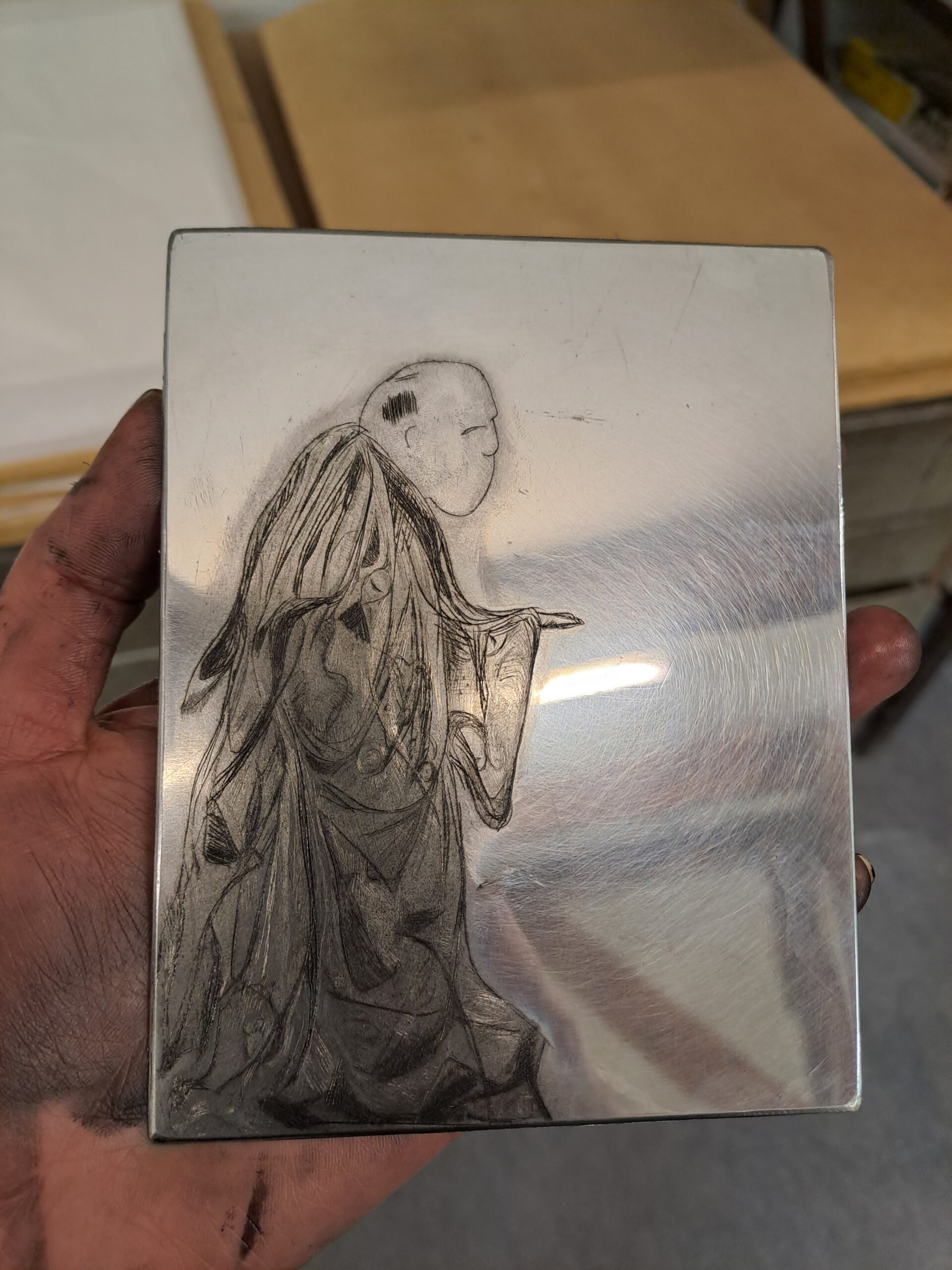 Gravure sur plexiglas d'après une œuvre de Roland Topor 2023