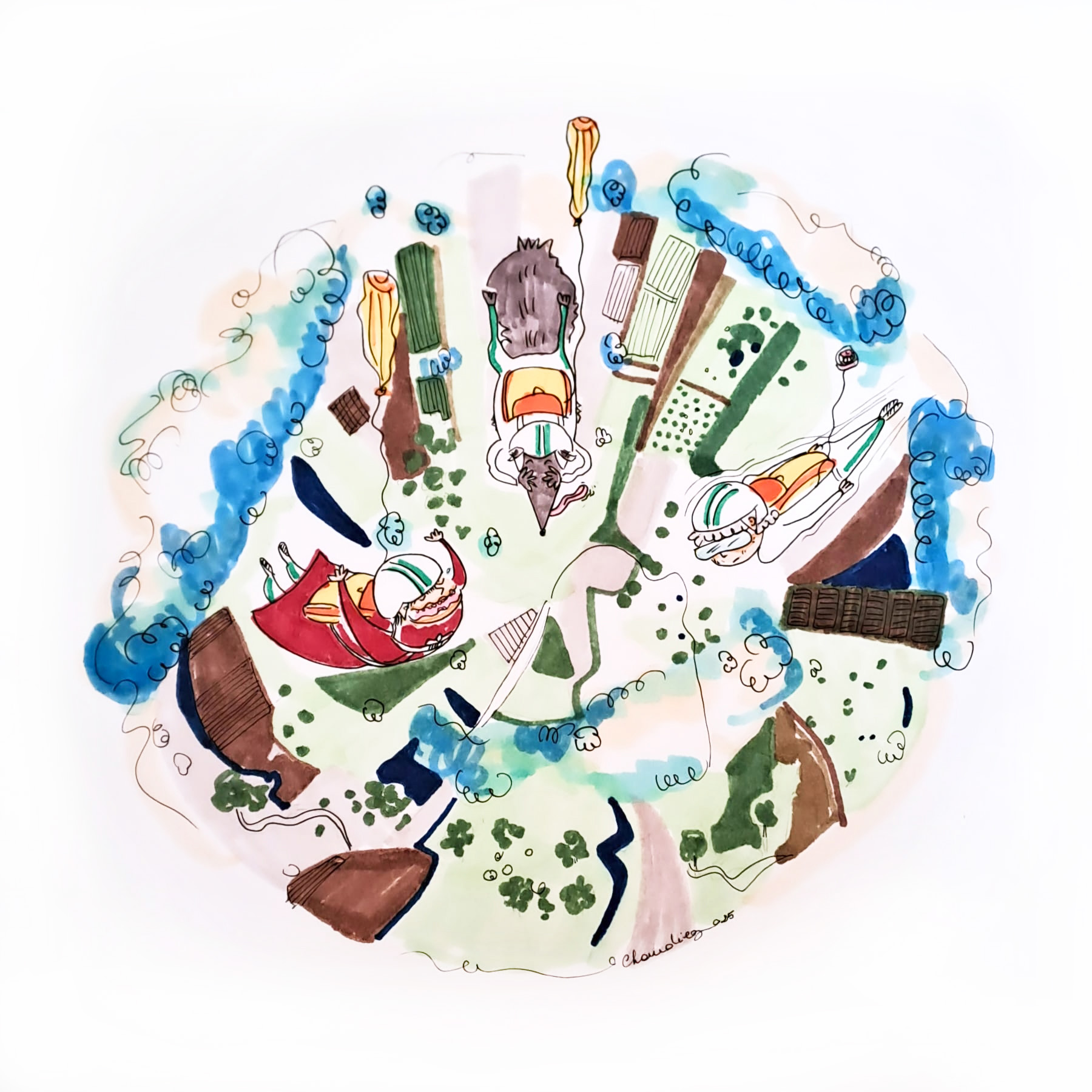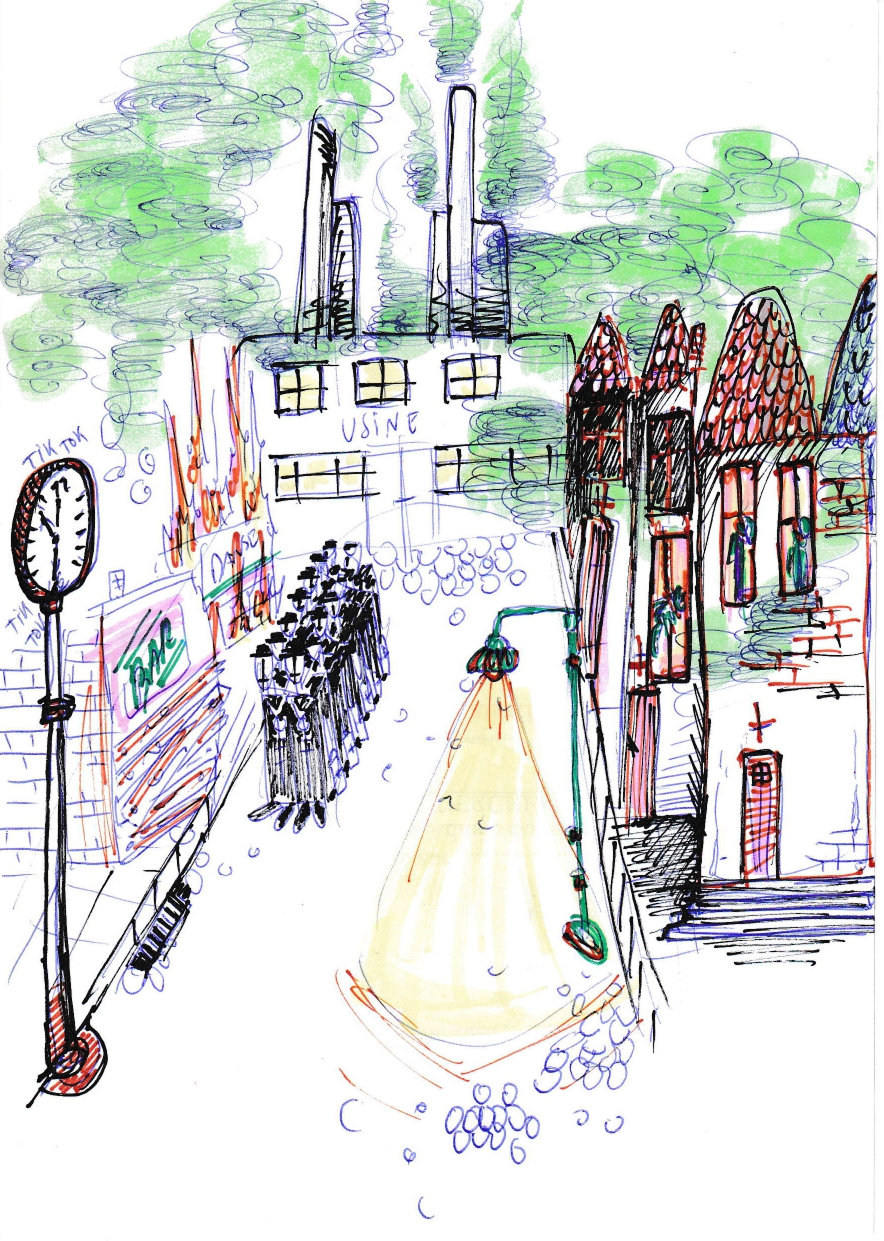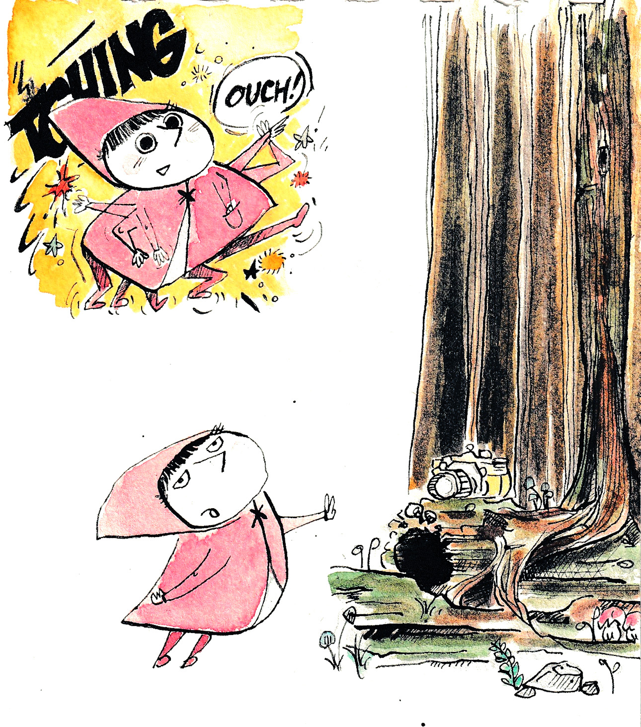 Croquis Chaperon rouge, aquarelle, plume encre de Chine