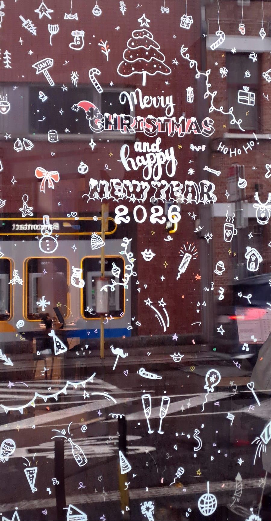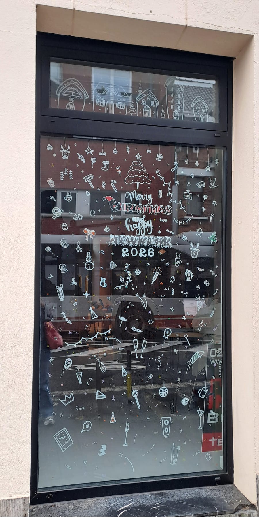 Peinture sur vitrine fin d'année 2025